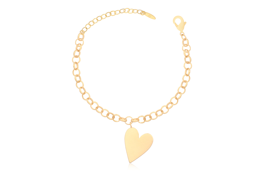 PULSEIRA EM PRATA, BERLOQUEIRA, CORAÇÃO CRAVEJADO, ELO RABO DE RATO 2,15mm ESPESSURA, 18cm COMPRIMENTO