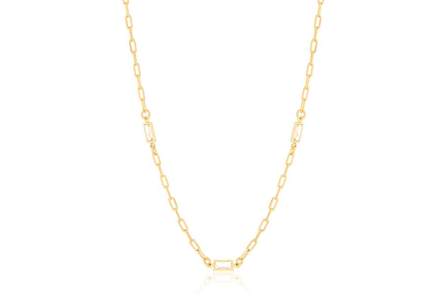 GARGANTILHA BANHADA EM OURO, VENEZIANA 0,80mm, 42cm COMPRIMENTO E CORAÇÃO COM ZIRCÔNIA 6X6mm, PARA QUALQUER COR DE PEDRA
