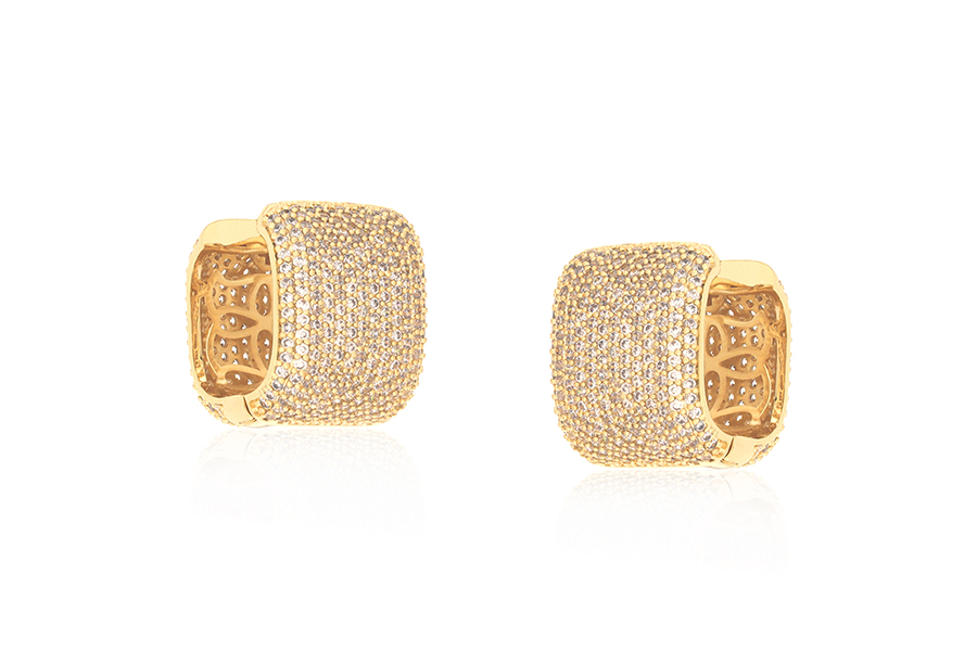 BRINCO EM PRATA, ARGOLINHA CLICK CURVADA CRAVEJADA, 10mm ALTURA
