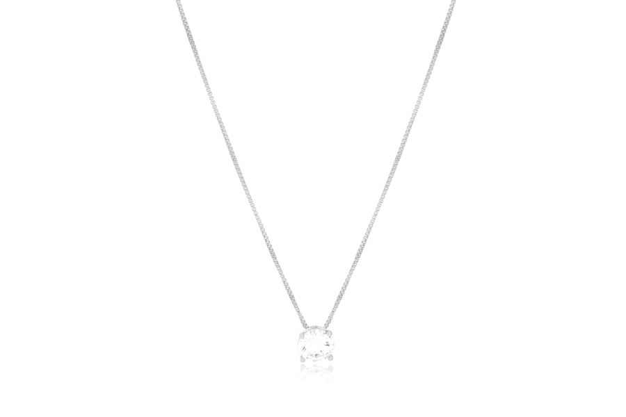 GARGANTILHA EM PRATA, 6 PONTOS DE LUZ COM CRAVAÇÃO INGLESA 4mm, ELO CADEADO, 39+5cm COMPRIMENTO