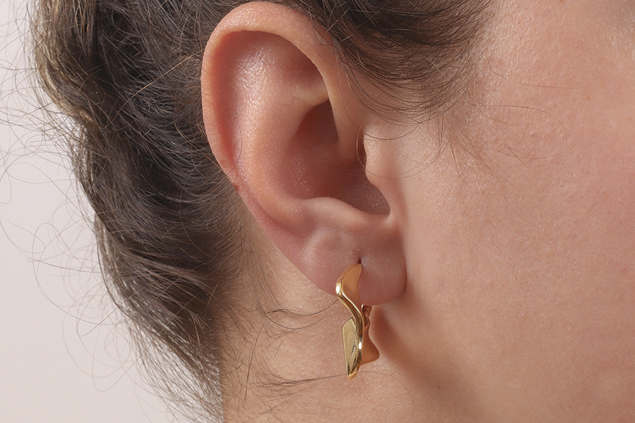 BRINCO BANHADO EM OURO, MEIA ARGOLA, 16mm ALTURA E 10,50mm LARGURA, LISO OU ACETINADO