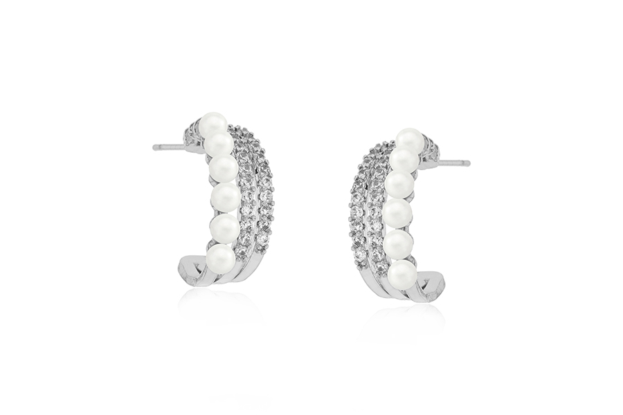 BRINCO BANHADO EM OURO, ZIRCÔNIA 3mm E PÉROLA 4,50mm LARGURA