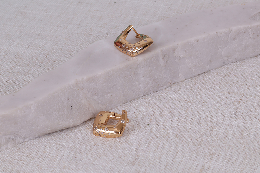 BRINCO BANHADO EM OURO, RETANGULAR 11X8mm COM ZIRCÔNIAS BRANCAS OU PRETAS