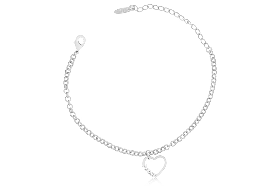 PULSEIRA BANHADA EM PRATA LEVE, ELO PORTUGUÊS 3mm, 17cm COMPRIMENTO, EXTENSOR 5cm COMPRIMENTO E CORAÇÃO AMOR 12mm LARGURA