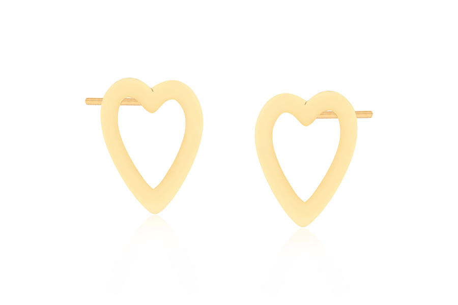 BRINCO BANHADO EM OURO, CORAÇÃO VAZADO 8mm LARGURA