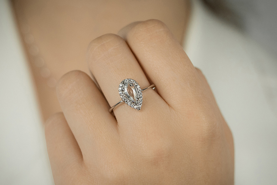 ANEL BANHADO EM RÓDIO BRANCO, SOLITÁRIO, ZIRCÔNIA QUADRADA 8mm, COM 235 ZIRCÔNIAS