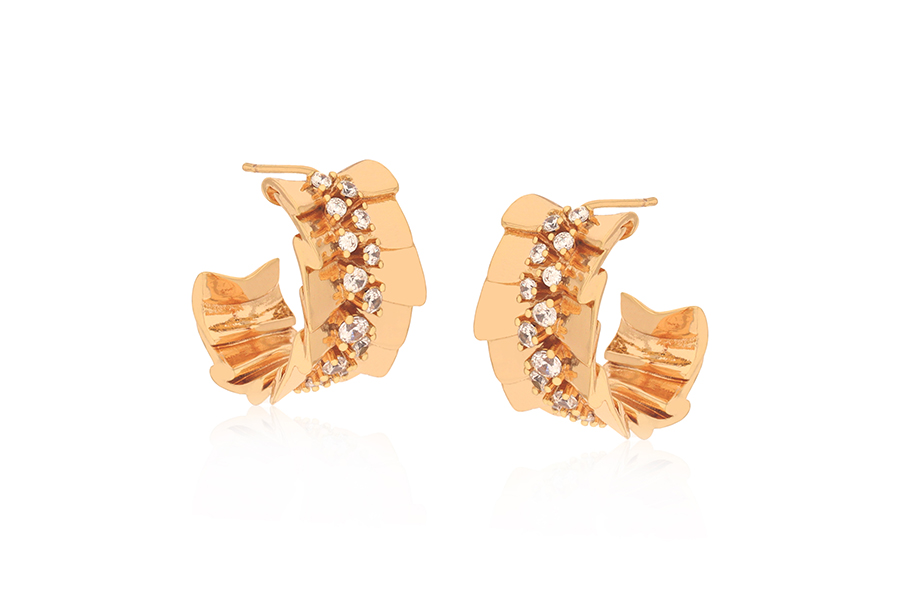 BRINCO EM PRATA, ARGOLINHA CLICK CURVADA CRAVEJADA, 10mm ALTURA