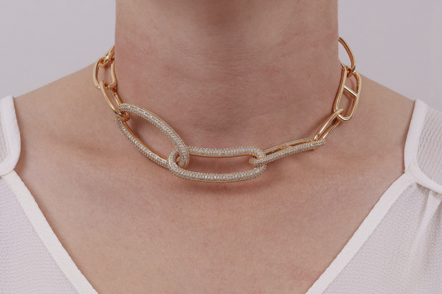GARGANTILHA BANHADA EM OURO, ELO 1,20mm LARGURA, 40cm COMPRIMENTO, EXTENSOR 10cm COMPRIMENTO E CORAÇÃO 7mm LARGURA, PARA QUALQUER COR