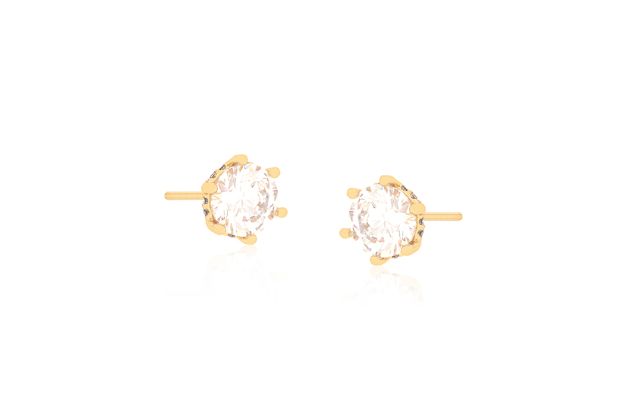 BRINCO EM PRATA, SOLITÁRIO REDONDO 7mm, 6 GARRAS COM ZIRCÔNIAS ENTRE ELAS