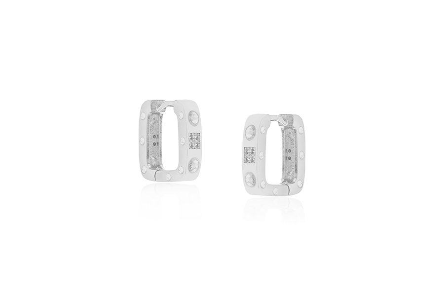 BRINCO BANHADO EM OURO, RETANGULAR 11X8mm COM ZIRCÔNIAS BRANCAS OU PRETAS