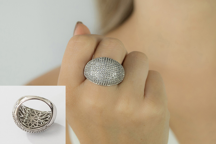 ANEL EM PRATA, CHUVEIRO REDONDO 8,50mm