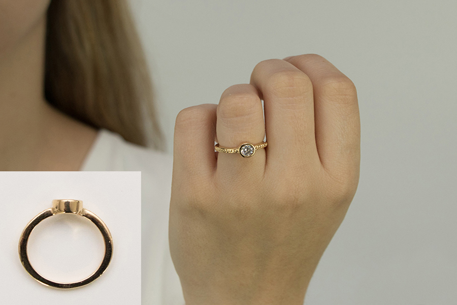 ANEL BANHADO EM OURO, SOLITÁRIO 10mm, ESTOQUE TRADICIONAL