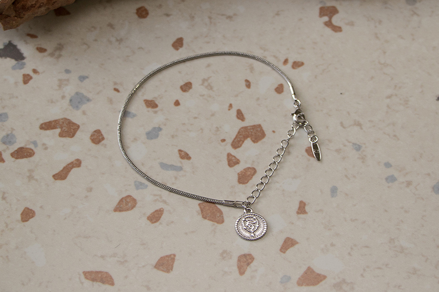 PULSEIRA BANHADA EM RÓDIO BRANCO, RABO DE RATO 1,40mm ESPESSURA E PINGENTE NOSSA SENHORA 11mm DIÂMETRO