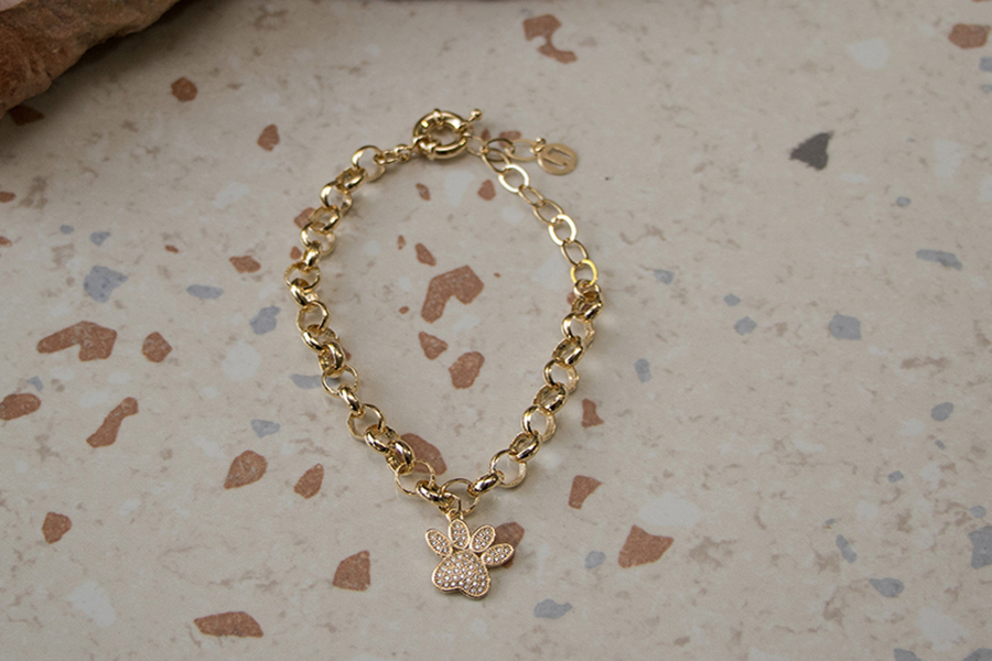 PULSEIRA BANHADA EM OURO, ELO PORTUGUÊS 7mm DE DIÂMETRO, 1,90mm DE LARGURA E PAI NOSSO 26mm DE LARGURA