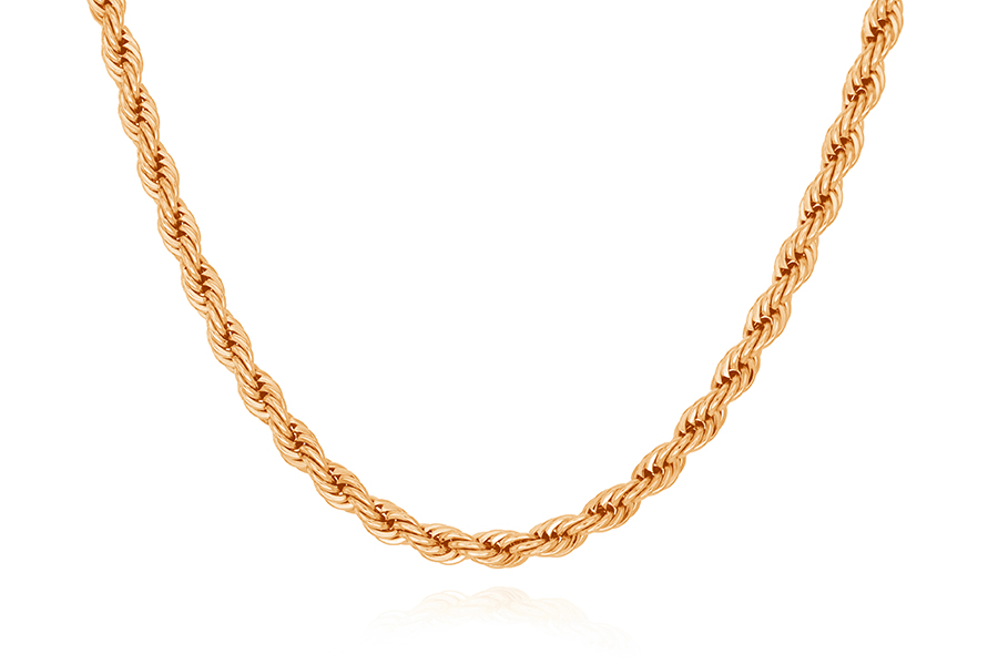 CORRENTE BANHADA EM OURO, ELO CORDA 3mm, 40cm COMPRIMENTO, EXTENSOR 5cm COMPRIMENTO E PESO 11g