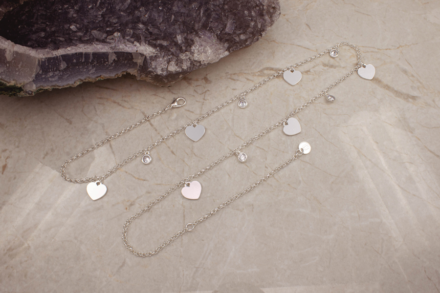 CHOKER BANHADA EM PRATA LEVE, ELO VENEZIANA 0,80mm, 37cm COMPRIMENTO, EXTENSOR 10cm COMPRIMENTO E 6 CORAÇÕES 6mm ALTURA