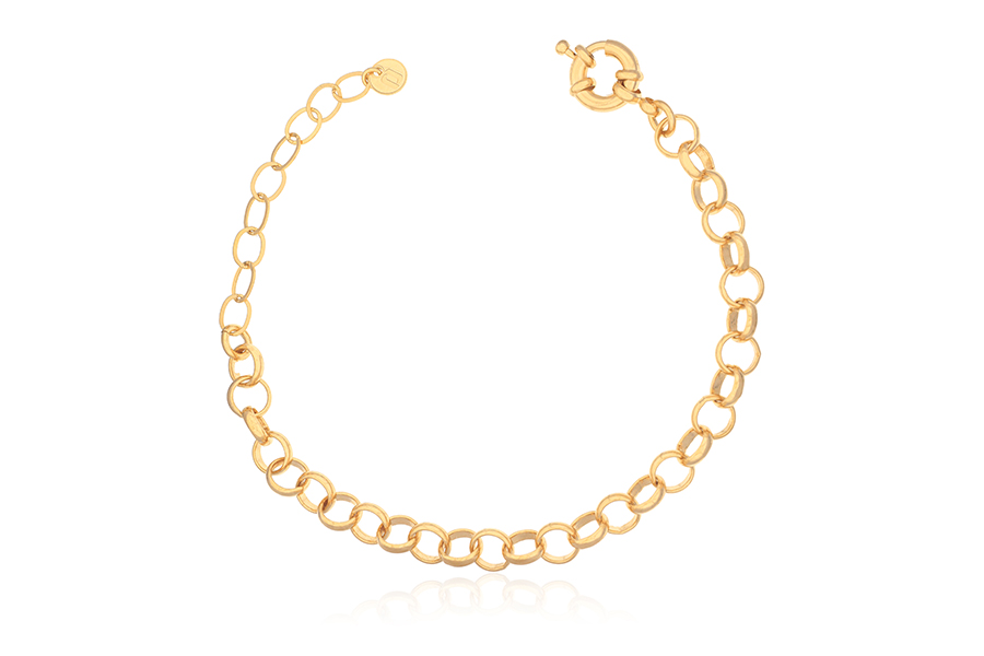 PULSEIRA BANHADA EM OURO, CORRENTE ELO PORTUGUÊS 7mm DIÂMETRO, 1,90mm ESPESSURA E PESO 10,30g, 17cm