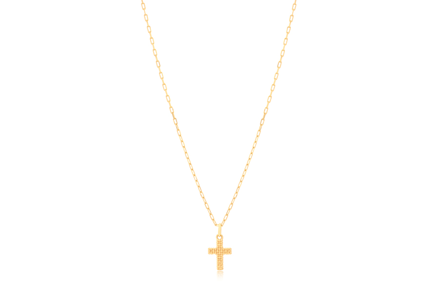 GARGANTILHA BANHADA EM OURO, ELO 2,80mm ESPESSURA, 60cm COMPRIMENTO E PINGENTE FÉ RETANGULAR 27X15mm