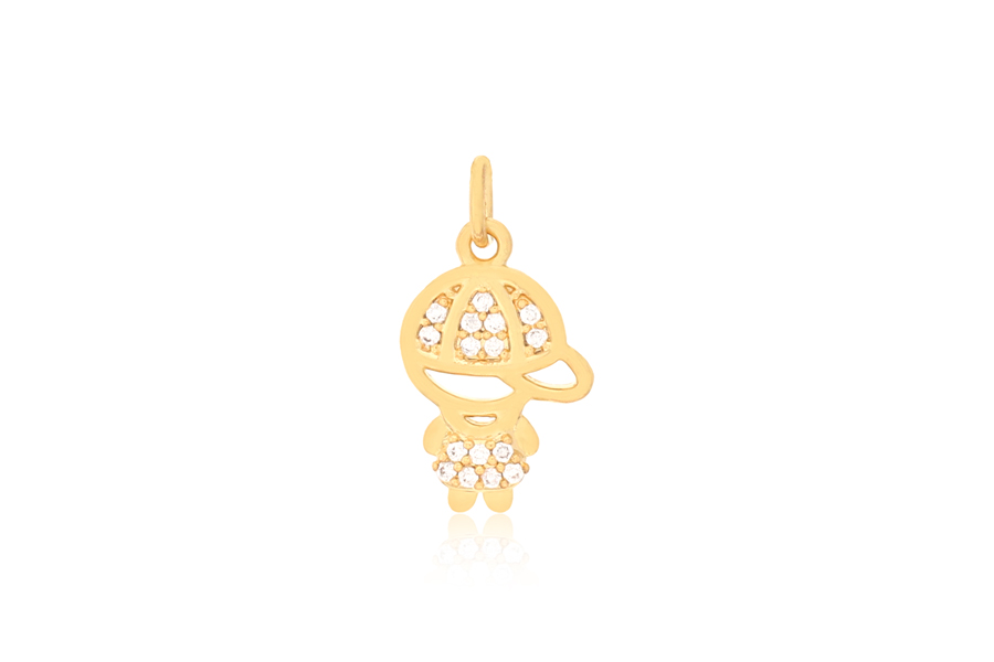 PINGENTE BANHADO EM OURO MENINO 15mm ALTURA COM 16 ZIRCÔNIAS