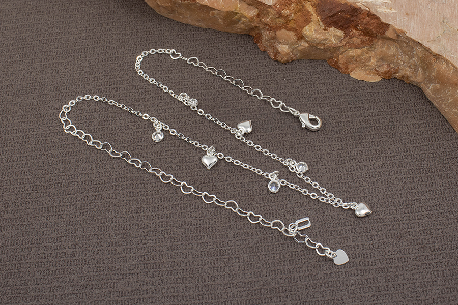 CHOKER BANHADA EM PRATA LEVE, ELO VENEZIANA 0,80mm, 37cm COMPRIMENTO, EXTENSOR 10cm COMPRIMENTO E 6 CORAÇÕES 6mm ALTURA
