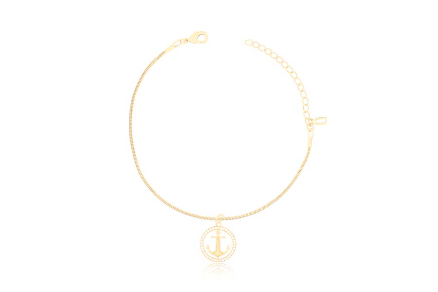 PULSEIRA BANHADA EM OURO, ELO RABO DE RATO 1,40mm, 17cm COMPRIMENTO, EXTENSOR 5cm E ÂNCORA 15mm DIÂMETRO