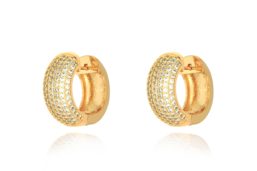 BRINCO EM PRATA, ARGOLINHA CLICK CURVADA CRAVEJADA, 10mm ALTURA