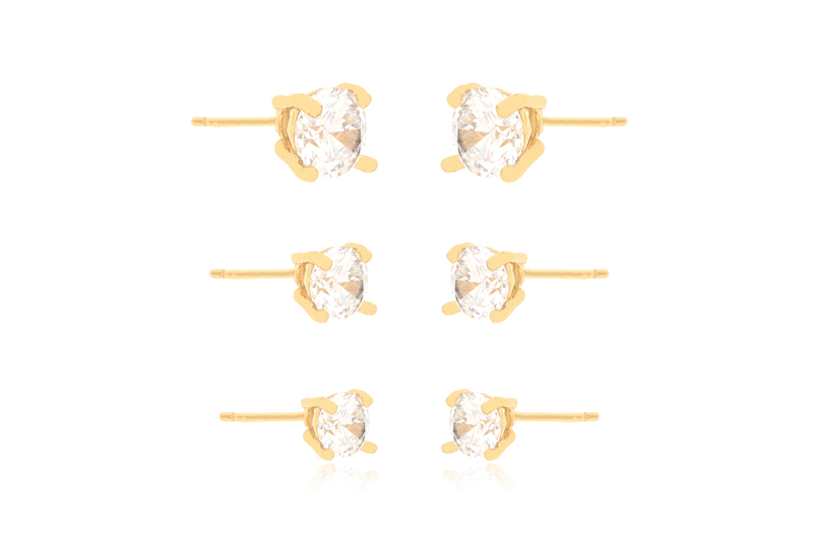 BRINCO BANHADO EM OURO, PONTO DE LUZ 8mm, LINHA TRADICIONAL