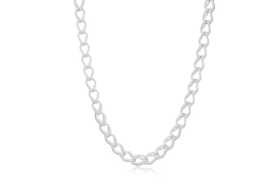 CHOKER BANHADA EM RÓDIO BRANCO, CORRENTE ELO DUPLO 5,20mm LARGURA, 36cm COMPRIMENTO, EXTENSOR 10cm E PESO 12,80g