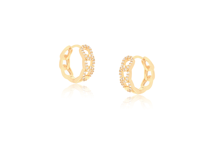 BRINCO BANHADO EM OURO, 18,50mm ALTURA COM 115 ZIRCÔNIAS