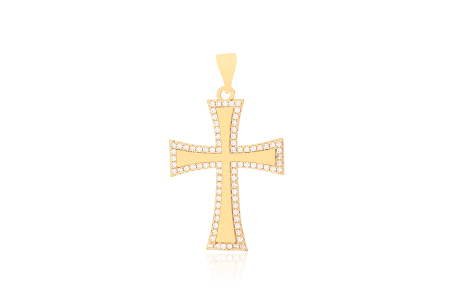 PINGENTE BANHADO EM OURO, CRUZ, 29x20mm