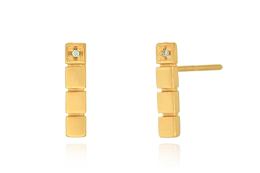 BRINCO BANHADO EM OURO, RETANGULAR 11X8mm COM ZIRCÔNIAS BRANCAS OU PRETAS