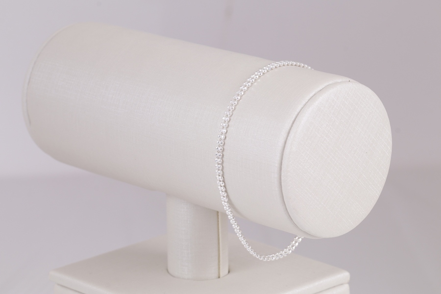 PULSEIRA EM PRATA, CORRENTE ELO ESFERAS DIAMANTADAS, DUPLO, 2,80mm LARGURA E 1,50mm ESPESSURA, 16+5cm COMPRIMENTO