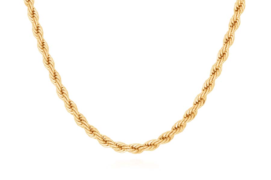 CORRENTE BANHADA EM OURO, PALMEIRA 4mm ESPESSURA, 60cm COMPRIMENTO E PESO 30,40G