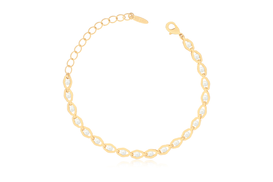 PULSEIRA BANHADA EM OURO, CRISTAL GOTA 14X10mm, ELO CARTIER 6,90X2,70mm, 16cm COMPRIMENTO E EXTENSOR 5cm COMPRIMENTO