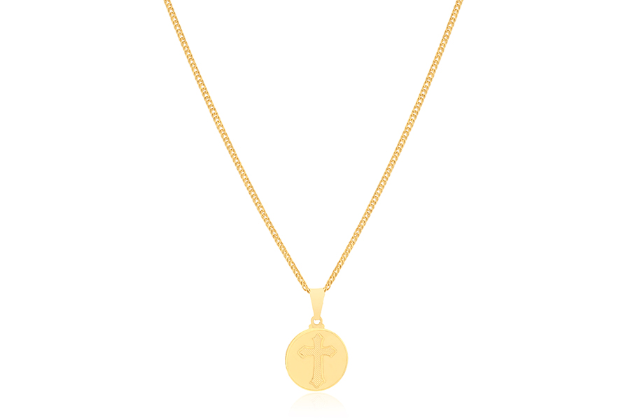 GARGANTILHA BANHADA EM OURO, ELO PORTUGUÊS 2mm ESPESSURA, 45cm COMPRIMENTO E GATO 17mm ALTURA