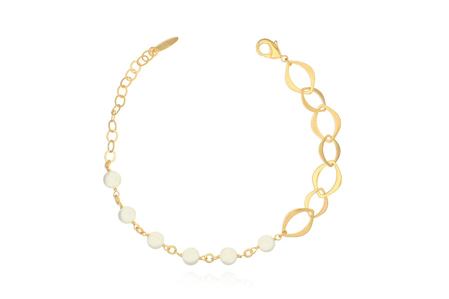 PULSEIRA BANHADA EM OURO, PÉROLAS 7, 8 E 9mm DIÂMETRO, 2 ZIRCÔNIAS GOTA, 17,50cm COMPRIMENTO